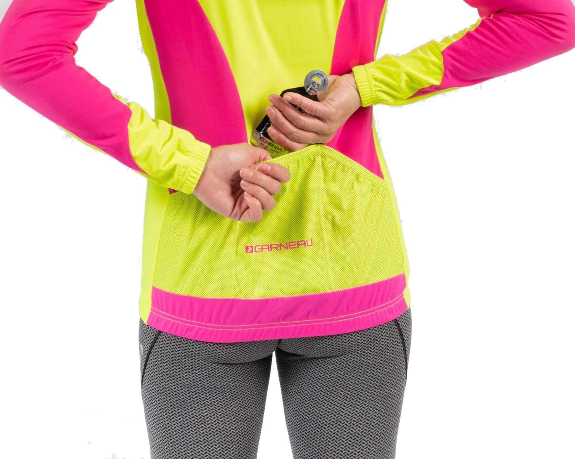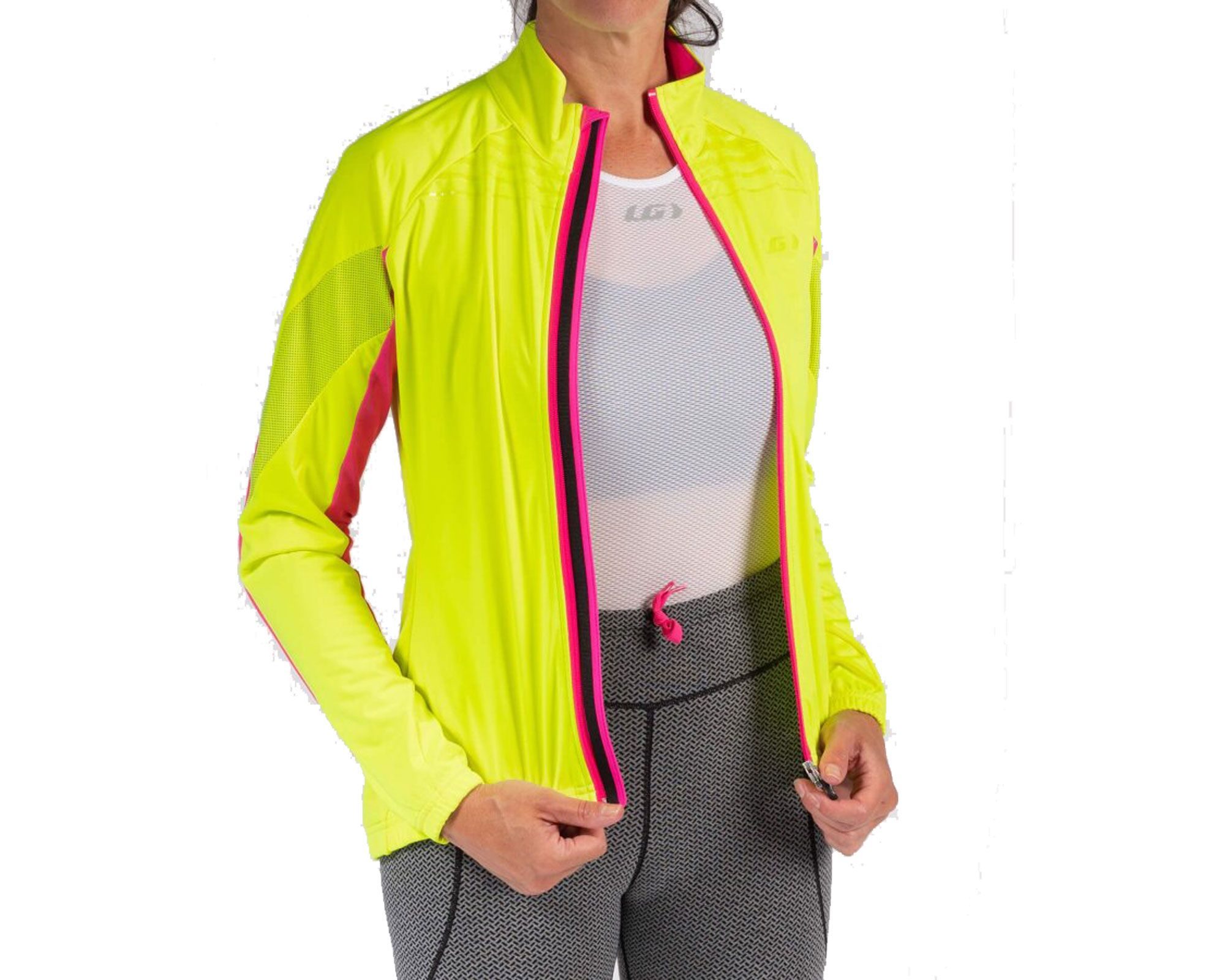 Велокуртка W Glaze 3 Rtr Garneau у яскравому, висококонтрастному поєднанні жовтого та рожевого кольорів розроблена для жіночих шосейних тренувань та змагань у мінливу погоду. Назва Rtr (Ready To Ride) підкреслює її готовність до швидкої реакції на погодні зміни. Це надзвичайно легкий вітро- та вологозахисний шар, який легко складається і займає мінімум місця, що дозволяє завжди тримати його в кишені джерсі. Ключова перевага цієї моделі – висока видимість (Hi-Viz), яку забезпечує яскрава кольорова гама. Це значно підвищує безпеку велосипедистки на дорозі, особливо в умовах поганого освітлення, туману чи дощу.