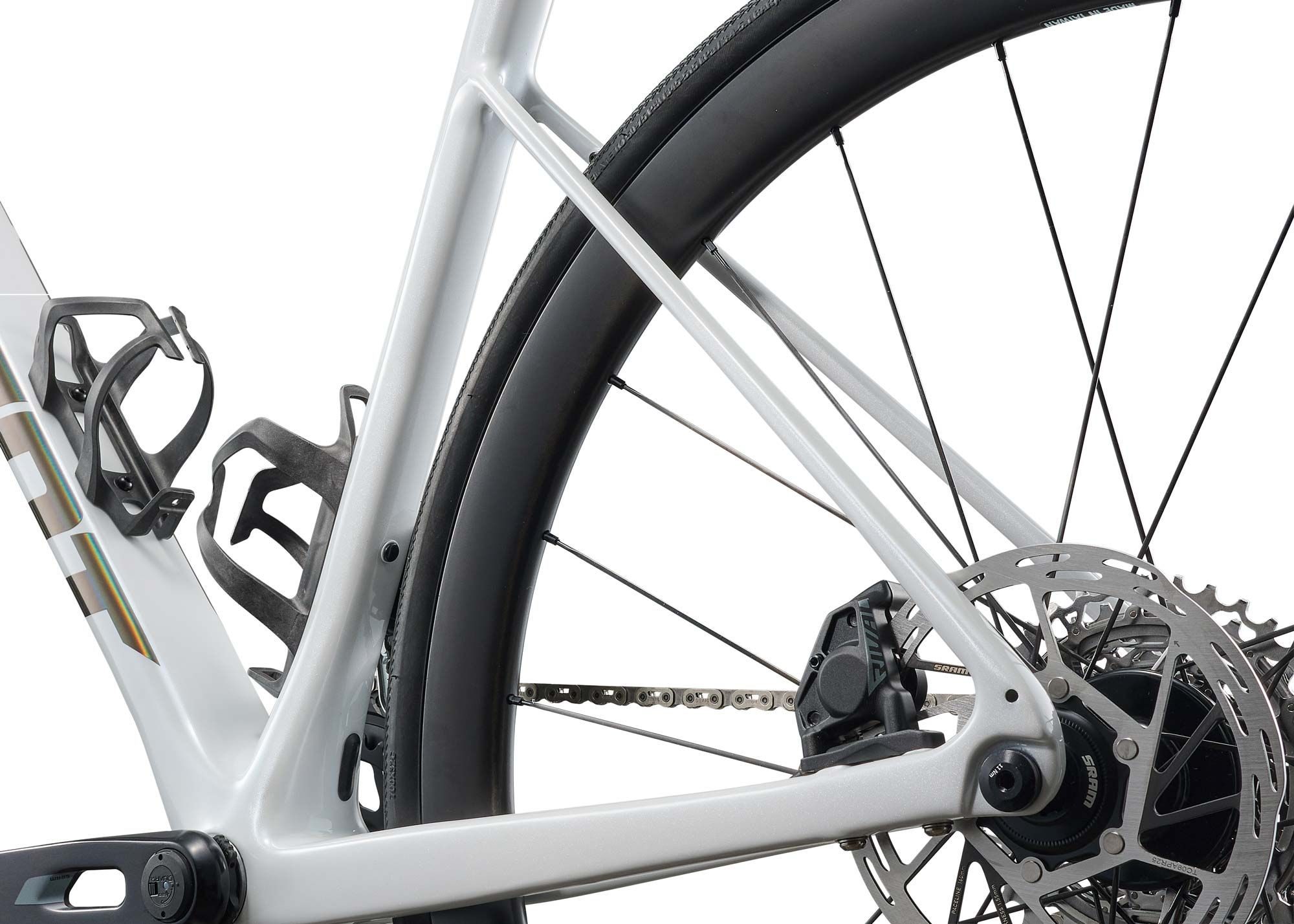 Велосипед оснащений 12-швидкісною бездротовою трансмісією SRAM Rival AXS з касетою 10-36T. Інтегрований вимірювач потужності у шатунах SRAM Rival E1 дозволяє контролювати тренувальний процес та оптимізувати продуктивність за даними потужності.