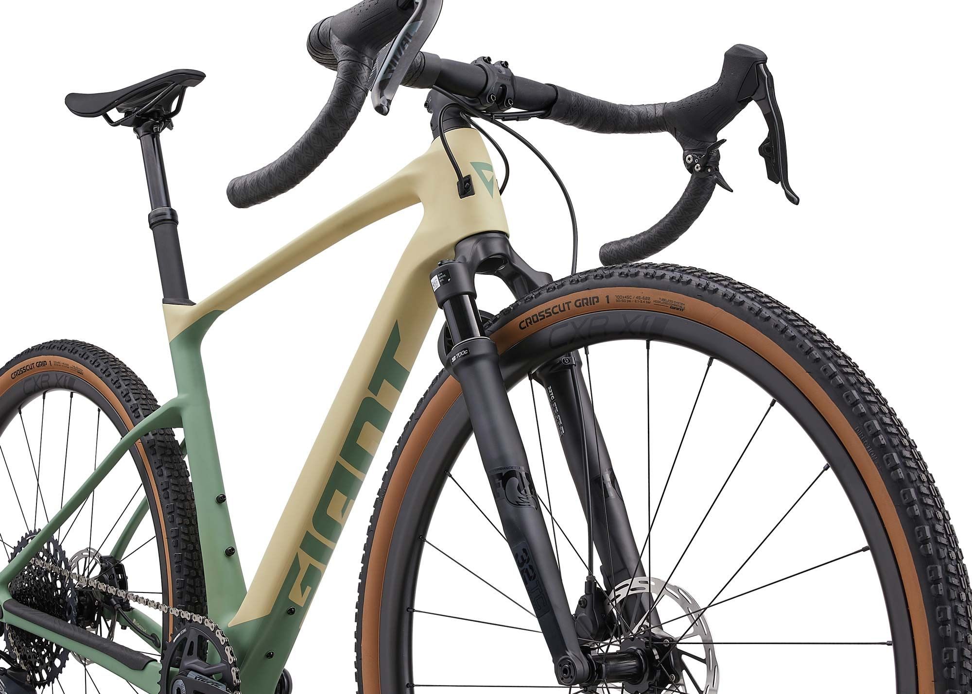 | Особливість | Карбоновий гравел з підвіскою, Fox 32 Float TC 40мм вилка, SRAM Rival AXS + GX Eagle AXS бездротова трансмісія 1x12, підвісковий підседіл Post Moderne 30мм, касета 10-52T, алюмінієві колеса Giant CXR X1, шини Giant Crosscut GRIP 700x45C Tan-wall, D-Fuse технологія комфорту, Flip chip Dropout для налаштування геометрії, tubeless готовність, максимальний розмір шини 700x53мм |
