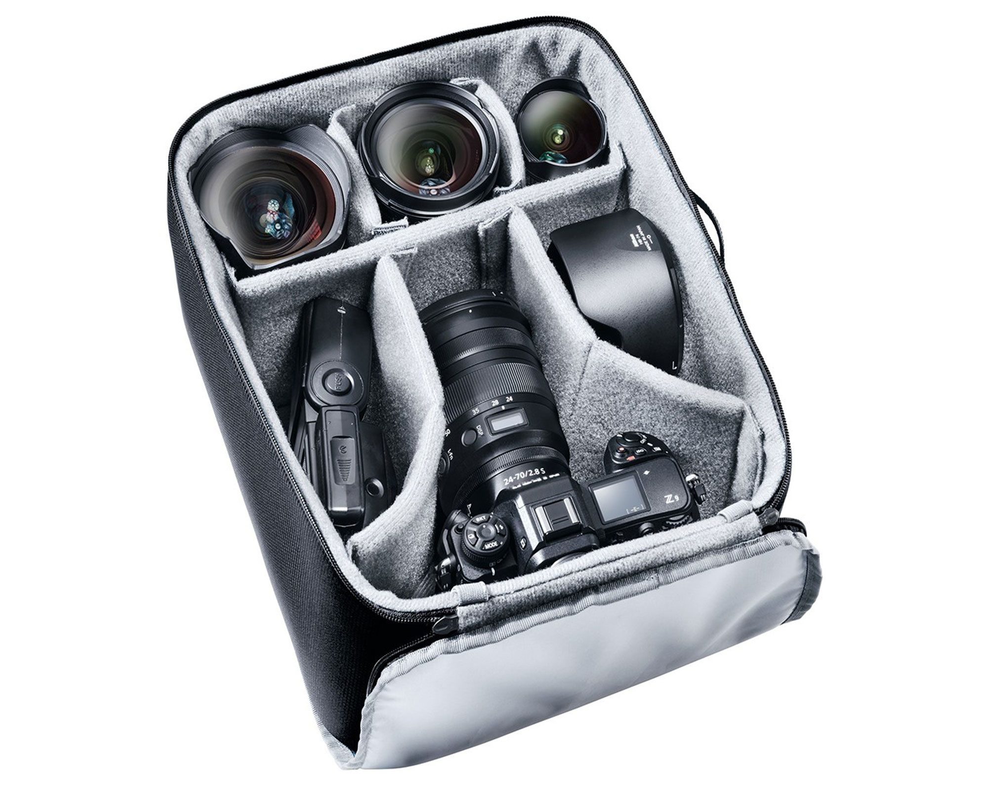 Він пропонує 5 літрів захищеного обєму для DSLR або кількох обєктивів, має мякі роздільники для індивідуальної організації і ідеально інтегрується у великі рюкзаки Deuter, забезпечуючи максимальний захист.