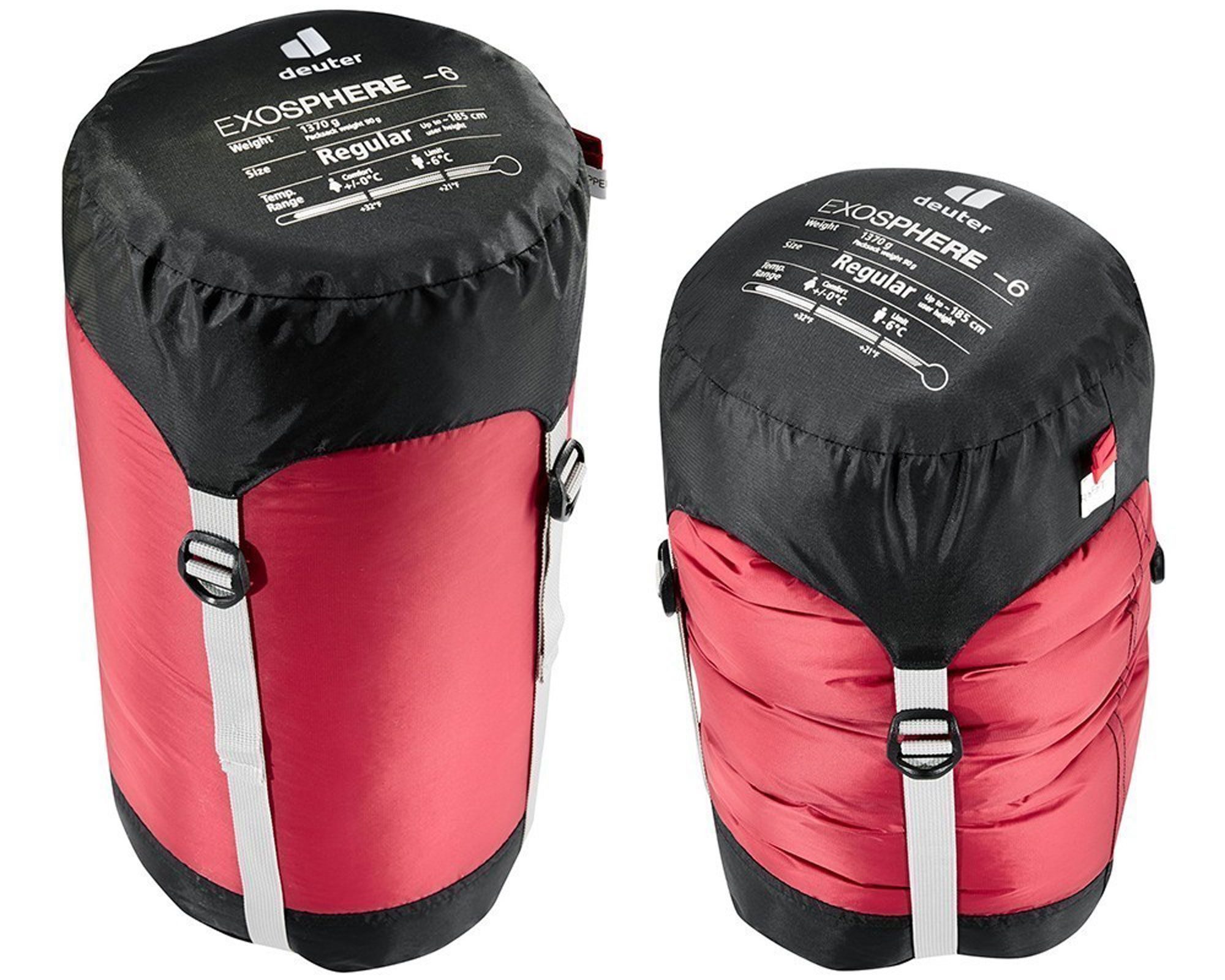 Спальний мішок Deuter Exosphere -6° у кольорі Cranberry-Fire – це універсальна модель, що забезпечує надійне тепло для 3-сезонного використання (холодна весна, осінь). Завдяки синтетичному наповнювачу Thermo Pro Loft®, спальник продовжує гріти навіть у вологому стані, що робить його ідеальним вибором для вологого клімату. Його крій "кокон" ефективно мінімізує обсяг і вагу, зберігаючи при цьому максимальну ізоляцію.