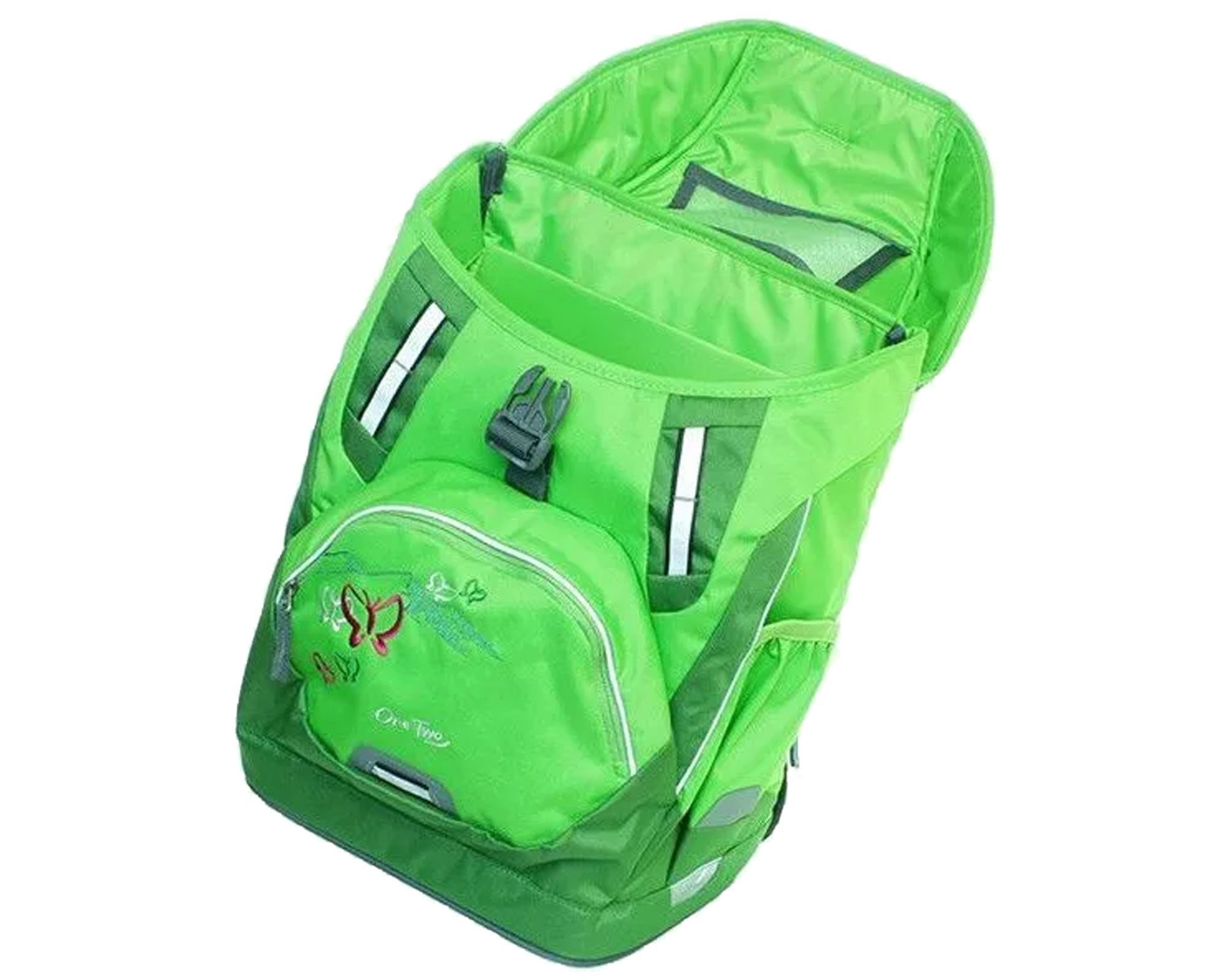 Рюкзак Deuter OneTwo у веселому кольорі Kiwi-Butterfly (салатовий з метеликами) – це ідеальний вибір для учнів початкової школи. Він розроблений з урахуванням ортопедичних вимог, щоб мінімізувати навантаження на спину дитини. Система спинки Active Comfort Fit забезпечує рівномірний розподіл ваги та щільне прилягання для правильної постави, що критично важливо у період росту. Широкі лямки та регульований грудний ремінь допомагають зафіксувати рюкзак у правильному положенні.
