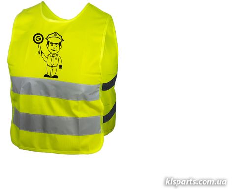 Світловідбиваючий жилет KLS Starlight дитячий police - M: Дитячий світловідбиваючий жилет з веселим малюнком. Призначений для поліпшення видимості вашої дитини у темну пору доби. Особливості: світловідбиваючий матеріал 3M. Характеристики: матеріал - поліестер; світловідбиваючий матеріал 3M.; випробу...