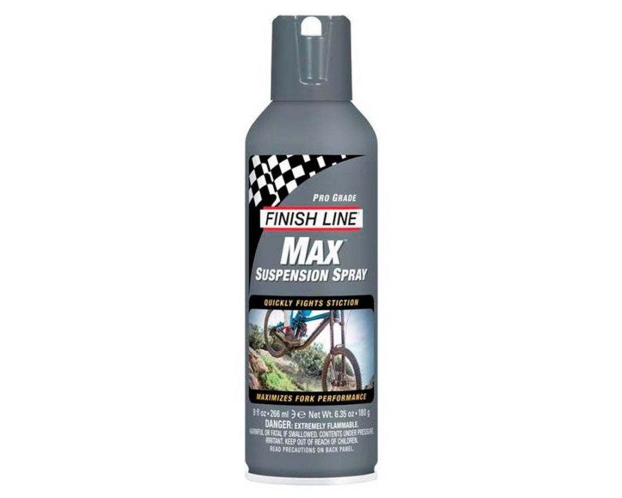 Смазка Finish Line MAX Pro-grade Suspension Spray предназначена для обработки пыльников, уплотнительных колец, ног и других деталей вилки. Средство улучшает эффективность работы вилки, ускоряет отскок и снижает жёсткость при езде по неровностям.