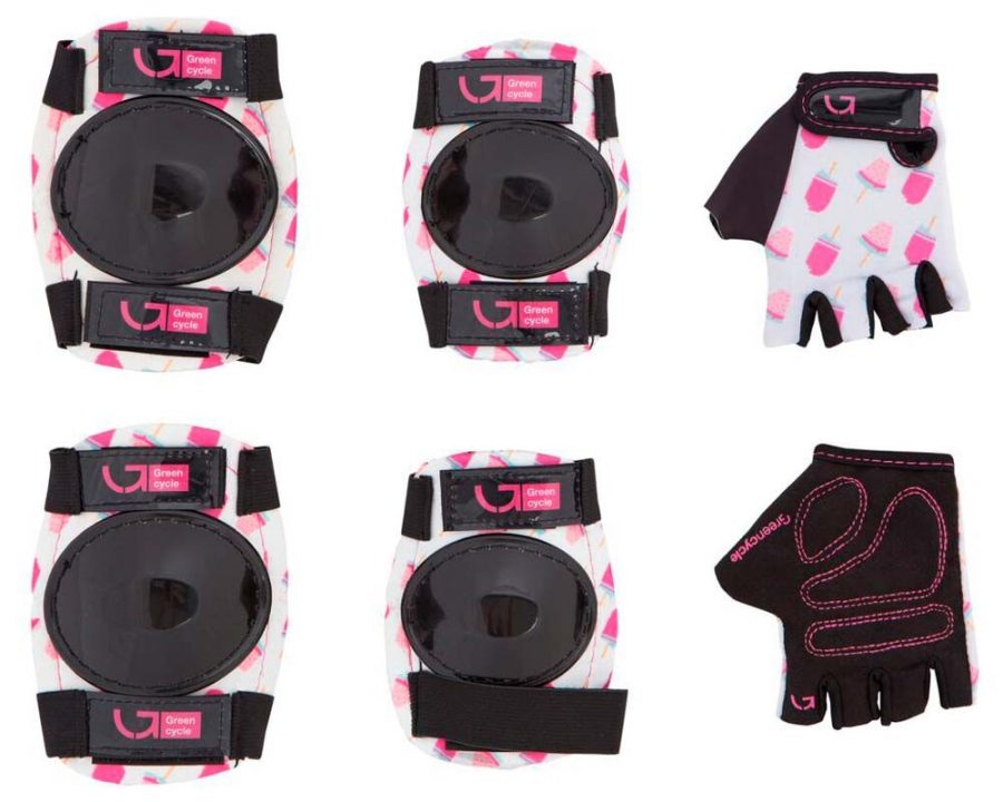 Захист для детей Green Cycle IceCream White наколінники, налокітники, Рукавички (розмір М), білі