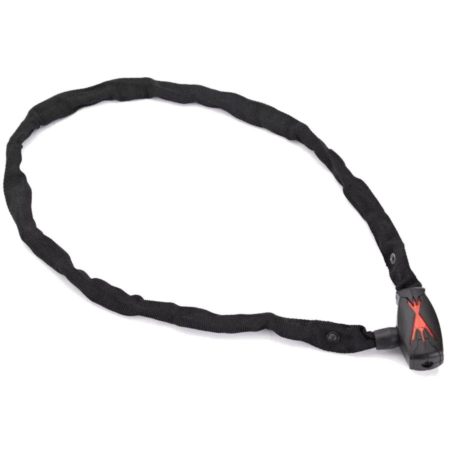 Замок оснащено ключовим механізмом з двома ключами в комплекті. Компактний розмір і гнучкість ланцюга дозволяють легко транспортувати замок у рюкзаку або обмотати навколо підседільного штиря.