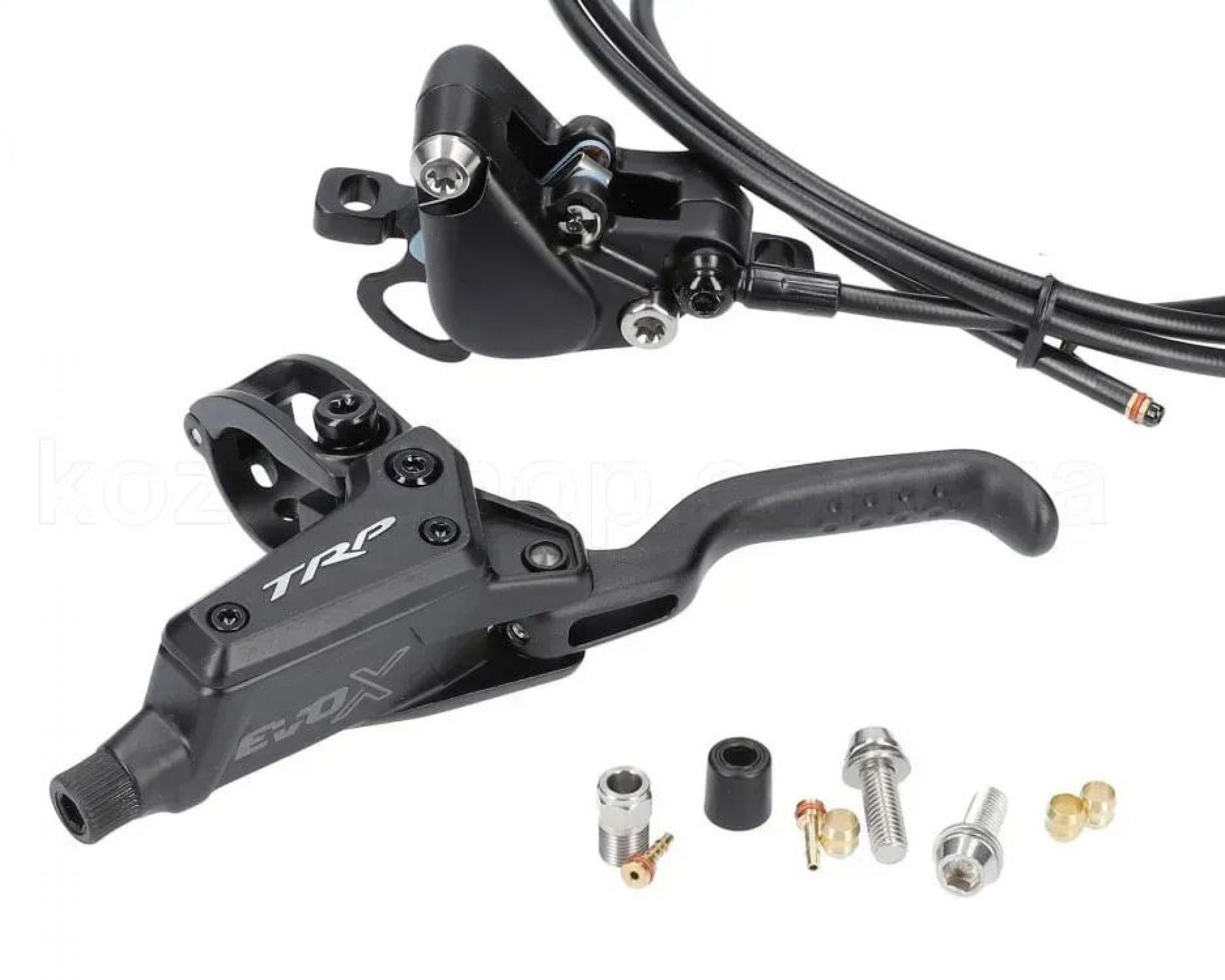 Високопродуктивні гідравлічні передні гальма TRP DHR EVO X. 2 поршня. Гідролінія 1900 мм. Ідеальні для легких MTB, трейлу та крос-кантрі. Чорний колір.