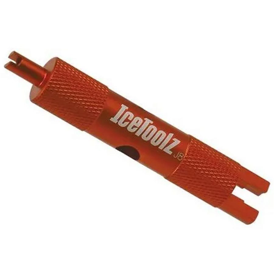 Ключ Ice Toolz 66V1 призначений для зняття або встановлення сердечників (штуцерів) велосипедних вентилів типу Presta та Schrader. Це незамінний аксесуар під час технічного обслуговування камер або безкамерних систем.