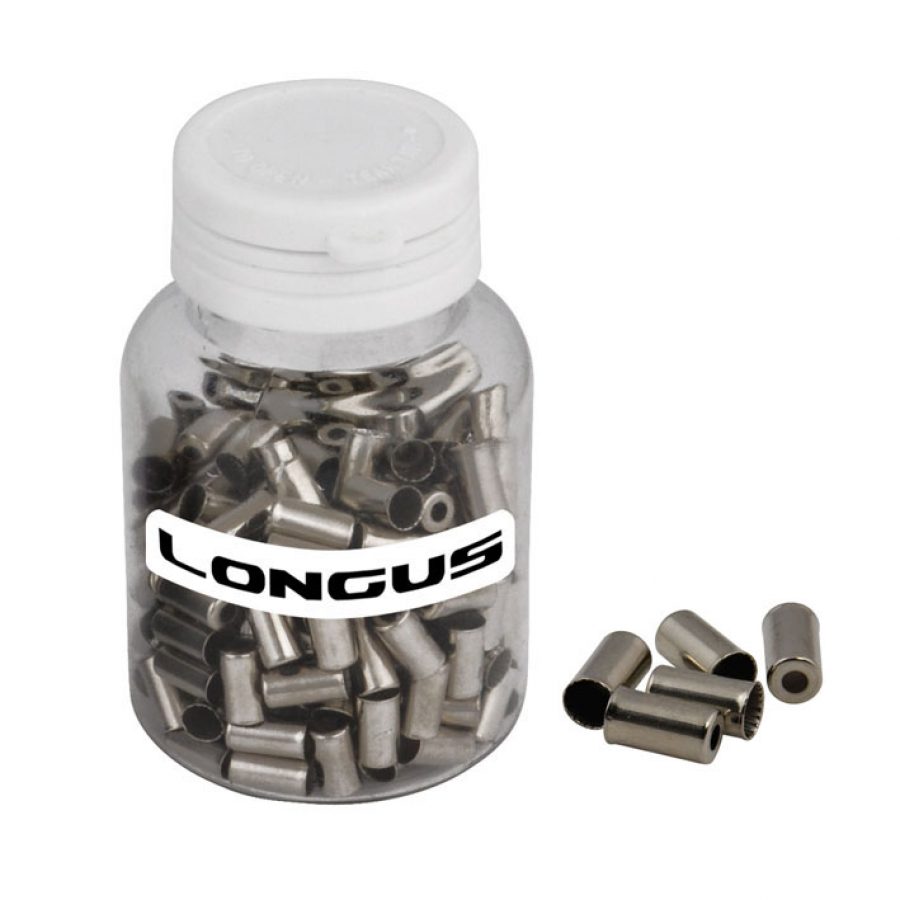 Металевий кінцевик Longus для гальмівної рубашки (довжина 14 мм, діаметр 5 мм). Призначений для збереження цілісності рубашки та надійного прокладання по рамі. Високоякісна сталь у срібному кольорі. Комплект 200 штук.