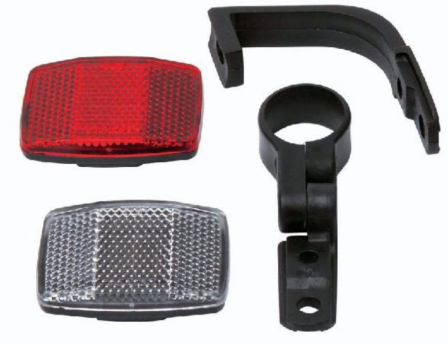 Комплект світловідбивачів з кріпленнями на руль та підсідельний штир поліпшать видимість вашого велосипеда в темну пору доби.
