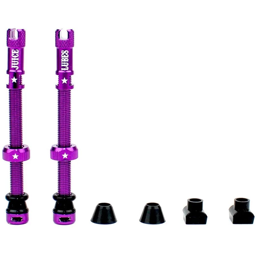 Ніпелі Juice Lubes Tubeless Valves 65 мм Purple розроблені для ободів з високим профілем і забезпечують надійне герметичне з'єднання. Яскравий фіолетовий анодований колір додає індивідуальності вашому велосипеда.