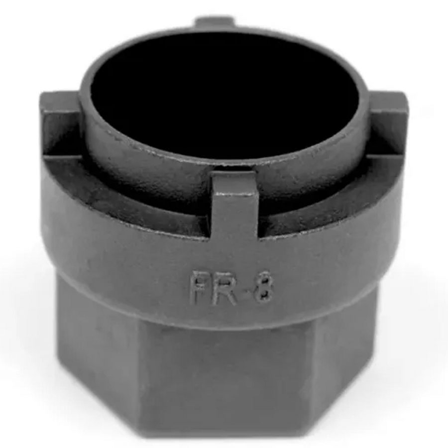 FR-8 має чотири широкі шліци діаметром 25 мм, що забезпечують точне прилягання до тріщатки та запобігають зісковзуванню під час демонтажу. Виготовлений з термічно обробленої сталі для максимальної міцності й зносостійкості.