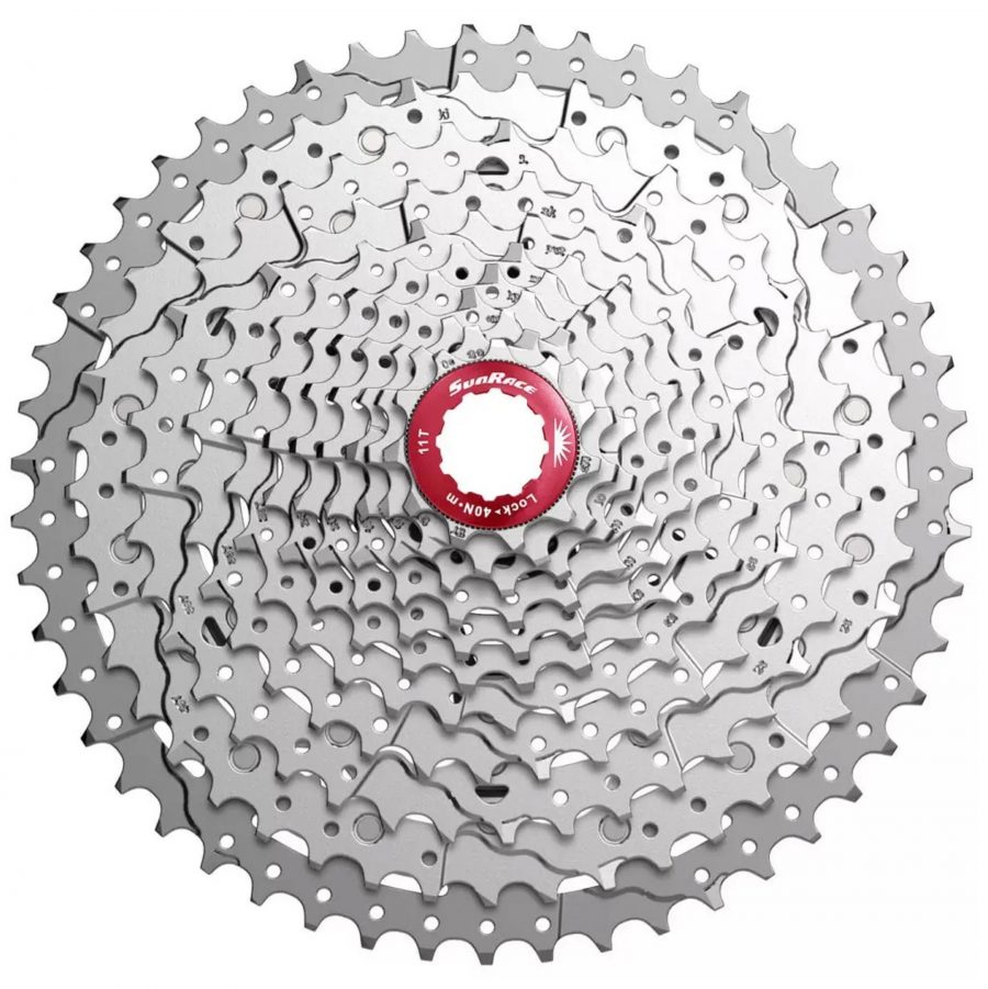 Касета 11-k 11-46T SUN RACE MX8 MTB, алюмінієвий павук, Metallic Silver