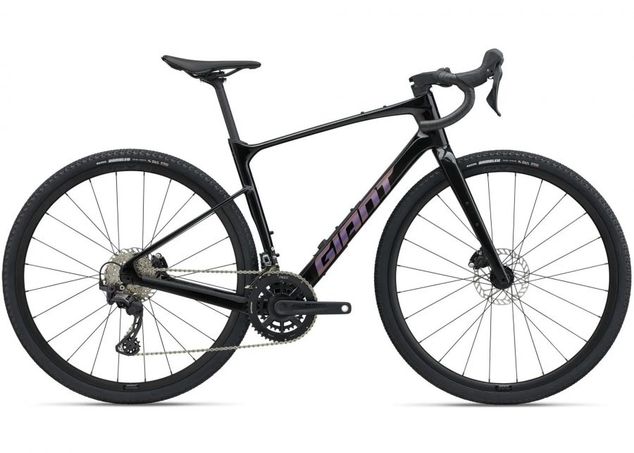 Карбонові ободи Giant P‑X2 Disc Tubeless-Ready з алюмінієвими втулками Giant 12 мм, спиці Sapim. Шини Giant CrossCut Grip TR 700×40c. Кермо Giant Contact XR D‑Fuse, грипси Stratus Lite 3.0, сидло Giant Grit — готує байк для bikepacking, гравію та пригод.