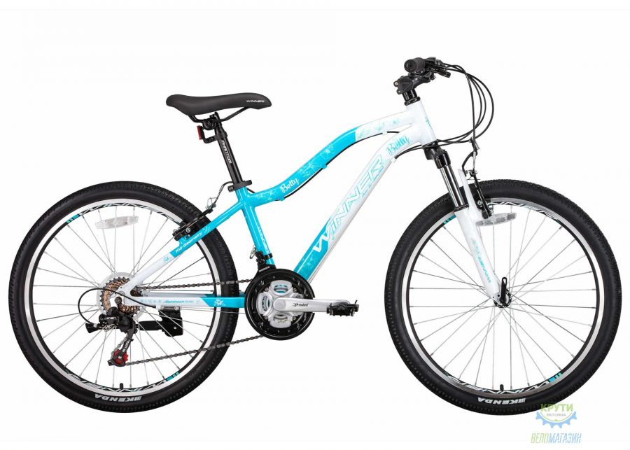 Стильный, красивый, качественный и по доступной цене - все это обновленная модель подрасткового велосипеда Winner Betty 24! Велосипед имеет легкую алюминиевую раму, 7-ми скоростную трансмиссию Shimano и амортизационную вилку, что выгодно его отличает от аналогичных моделей. Также отметим заводскую подножку которая идет в комплекте с велосипедом. Вес велосипеда, всего 12.9 кг.