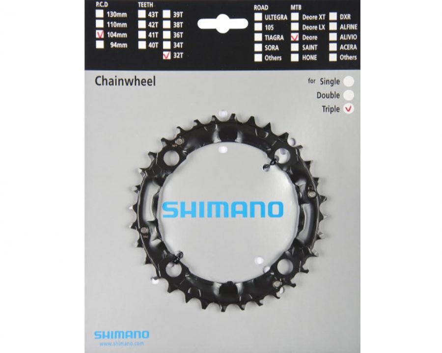 Зірка шатунів FC-M442/443/480 DEORE, 32зуб. Сумісна з захистом. Діаметр монтажу: 104 мм Трансмісія: 3X9 Матеріал: сталь