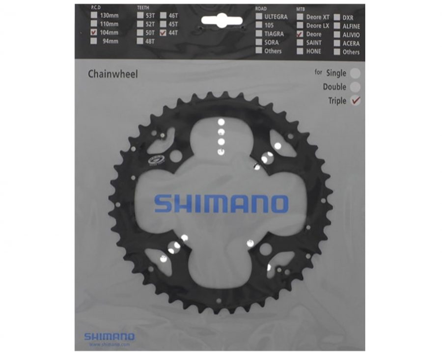 Зірка шатунів FC-M530/531 DEORE, 44зуб. 9-швидк. Сумісна з захистом. Діаметр монтажу: 104 мм Трансмісія: 3X9 Матеріал: алюміній