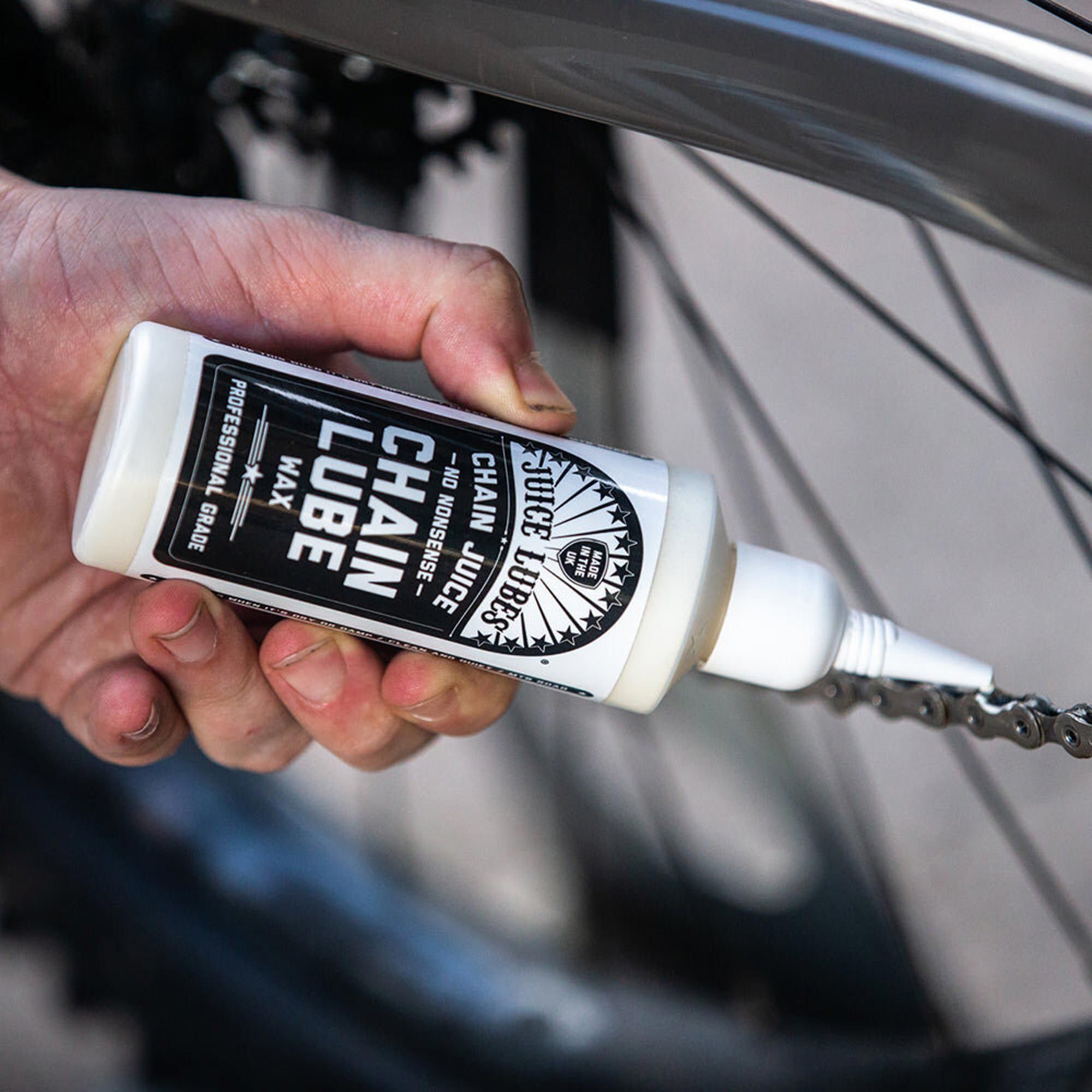 Juice Lubes Wax Chain Oil — це парафінове мастило з сухим фінішем, яке утворює на ланцюгу чисту захисну плівку. Воно не притягує пил і бруд, завдяки чому трансмісія залишається чистою навіть після багатьох кілометрів на сухому асфальті чи ґрунті.