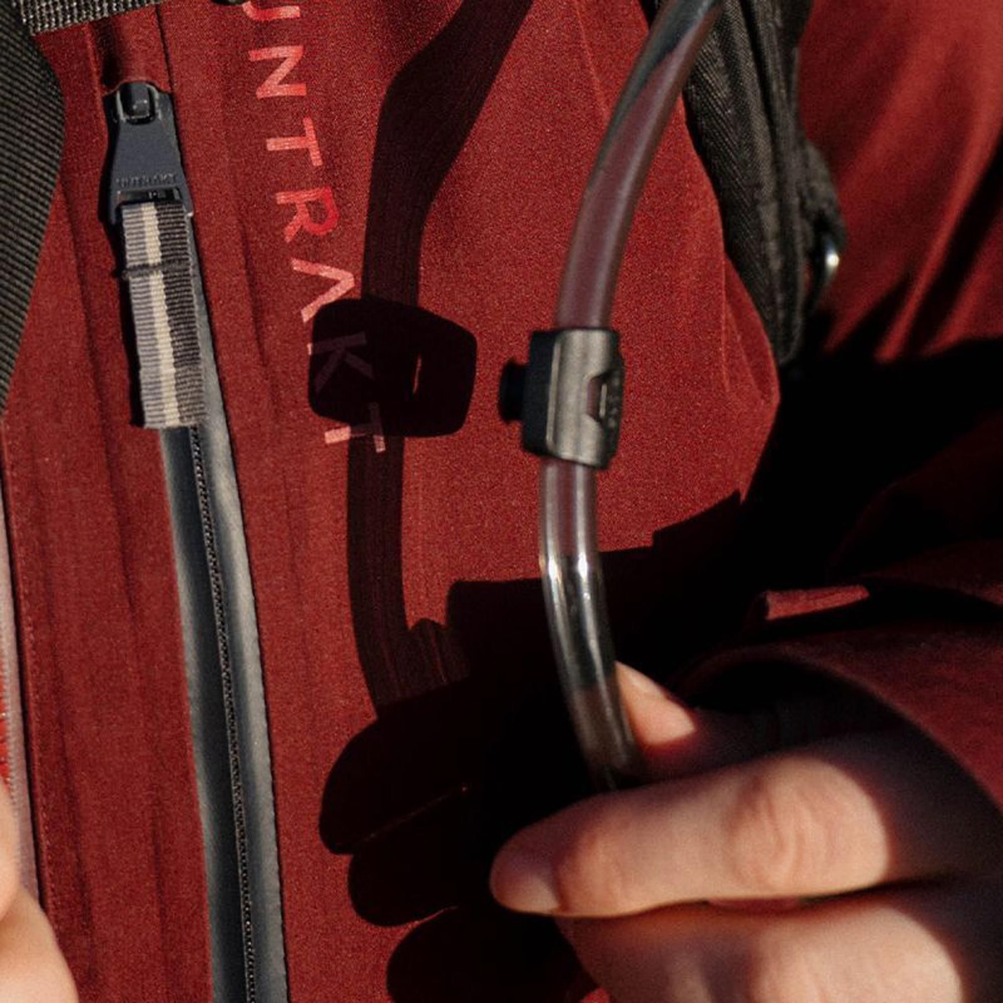 Кліп оснащено гнучким елементом для фіксації на ремені чи лямці. Трубка або дріт надійно тримаються всередині та водночас легко знімаються однією рукою, не знімаючи рюкзак.