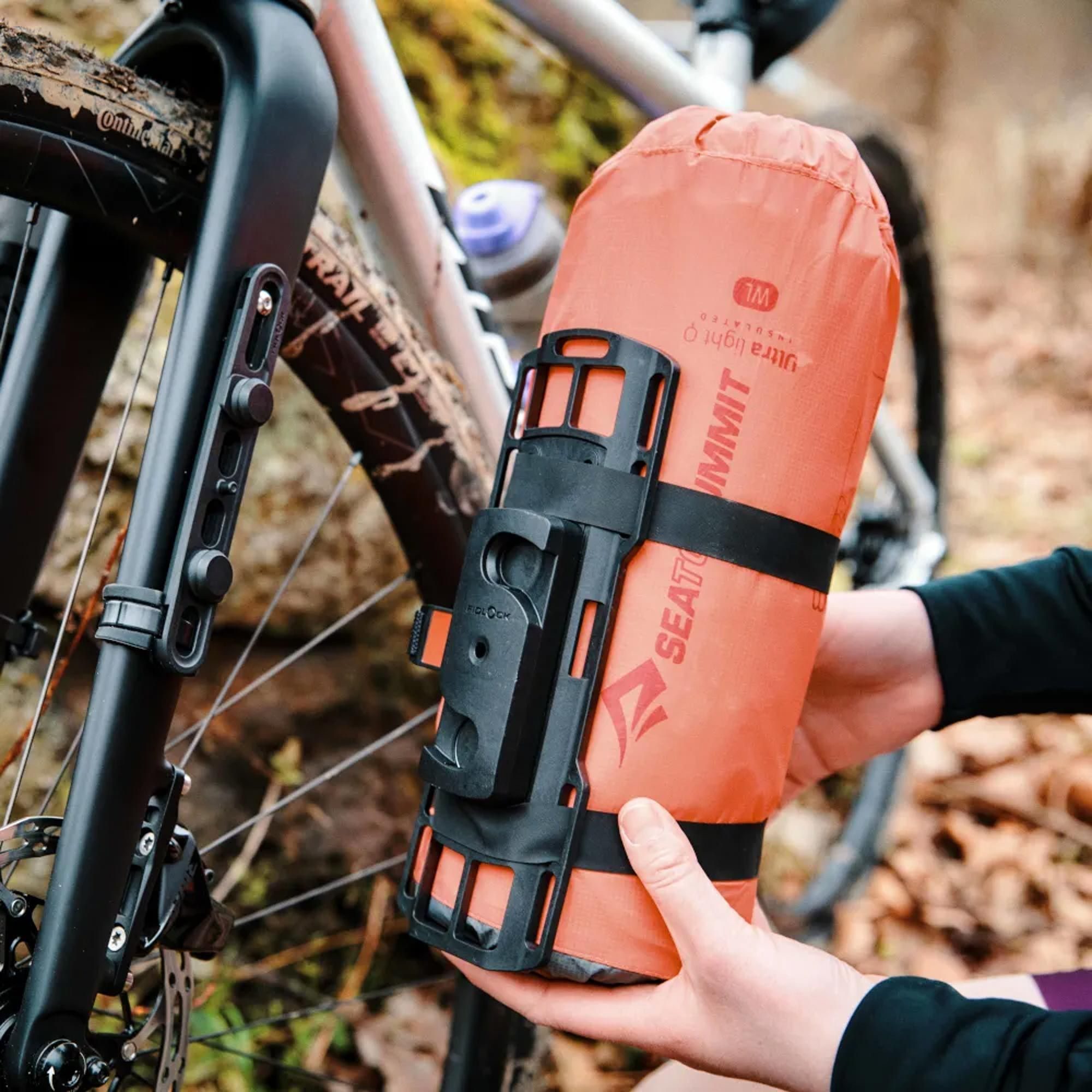 Фіксація відбувається за допомогою двох силіконових ремінців з антиковзаючим покриттям, що щільно охоплюють корпус пляшки. Магнітно-механічна система FIDLOCK забезпечує інтуїтивно просте та стабільне кріплення на велосипеді чи рюкзаку.