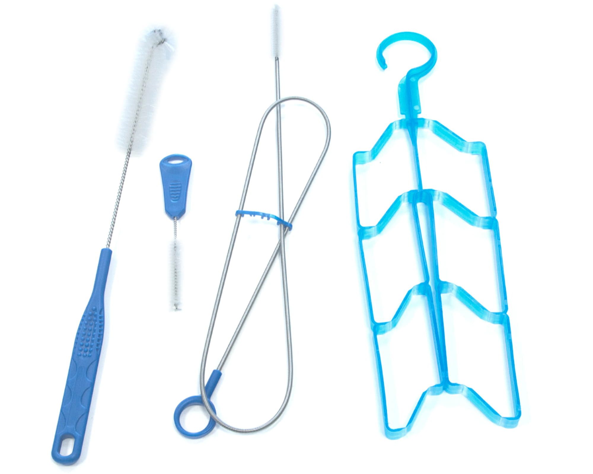 Характеристики: Велика щітка для очищення ємності для води; мала щітка для очищення мундштука; довга гнучка щітка для очищення шлангу; рамка для сушіння.