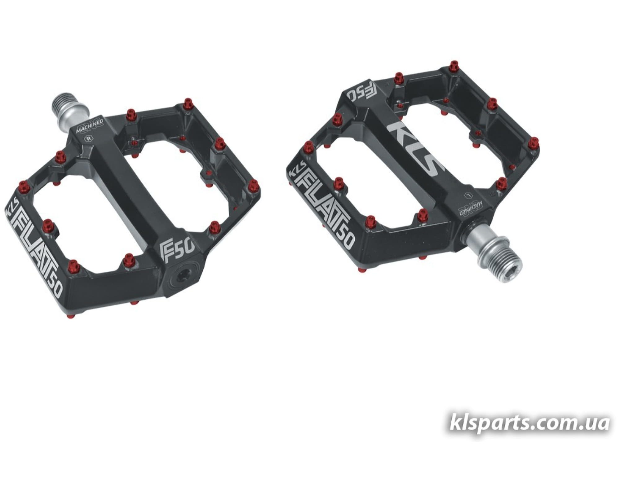 Педалі KLS Flat 50: Широкоплатформенні педалі KLS, з змінними шипами, для BMX та MTB.
