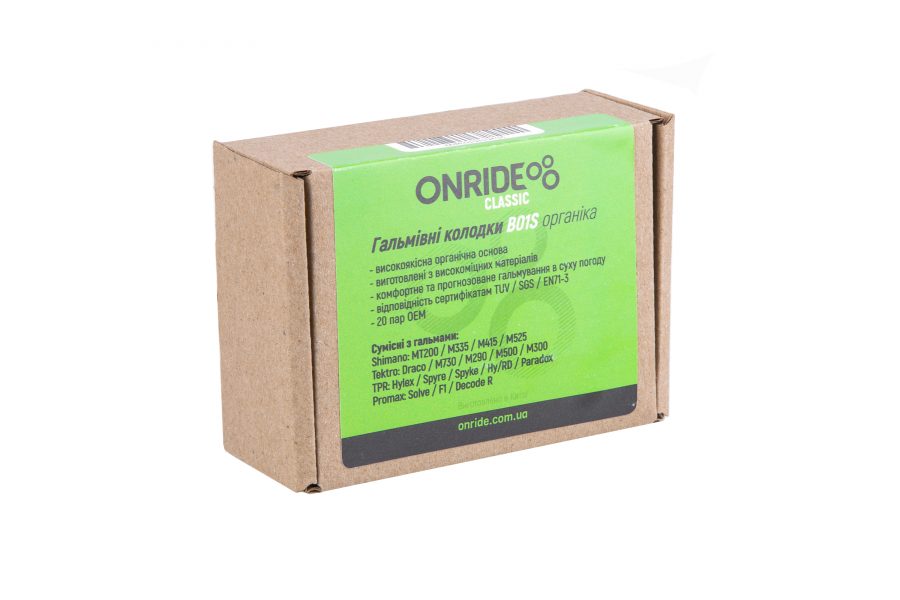 Гальмівні колодки ONRIDE Classic B01 органіка (для Shimano MT200/M335/M415; Tektro M290), 20 пар ОЕМ