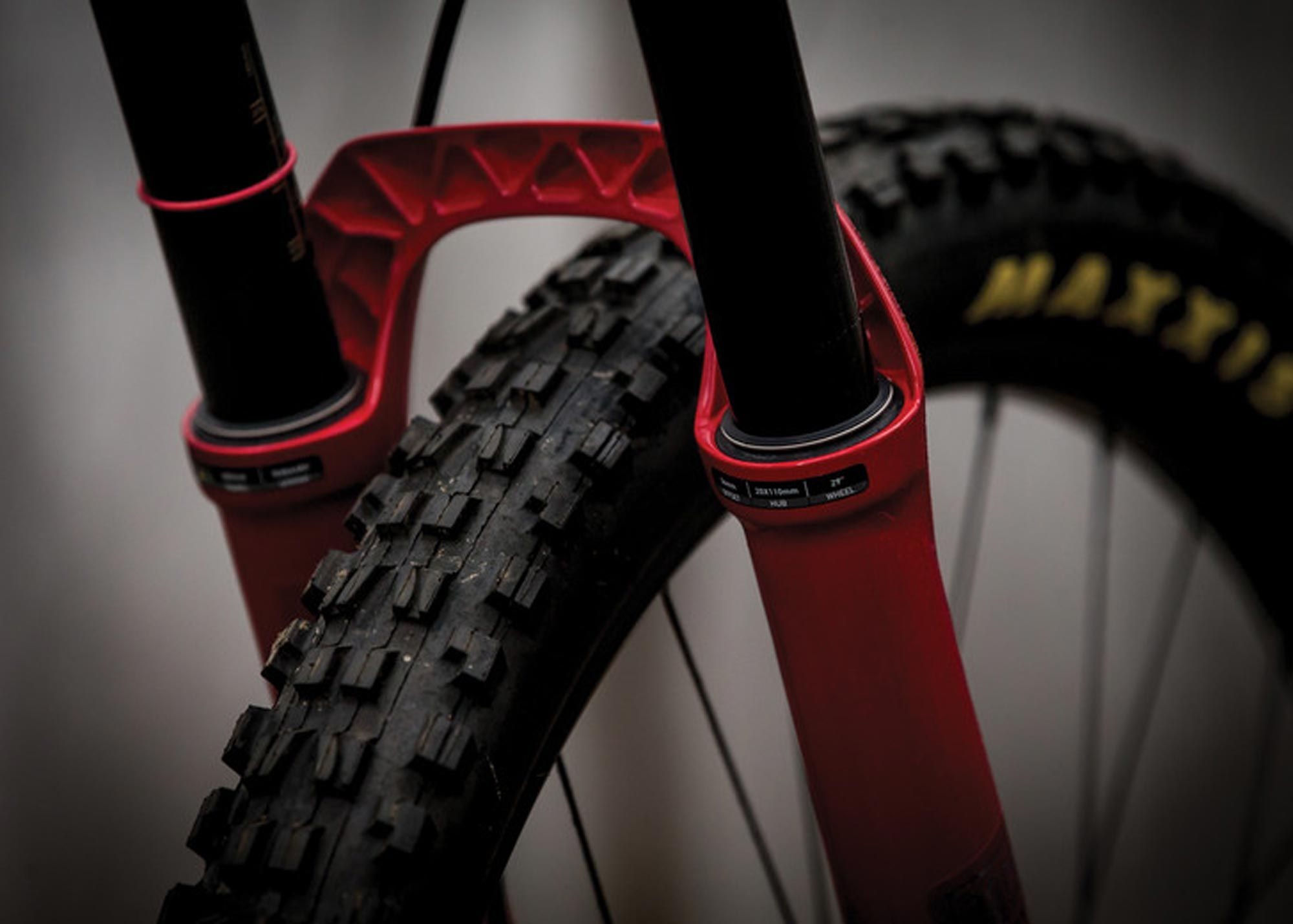 Корона з кованого алюмінію та 35-міліметрові ноги в поєднанні з широким шасі забезпечують безкомпромісну жорсткість. Вісь Boost 20x110 мм підвищує торсійну стійкість, а Offset 56 мм оптимізований для сучасної геометрії рам з великим виносом та прогресивними кутами керма. Усе це дозволяє точніше контролювати байк на високих швидкостях і в технічних поворотах.
