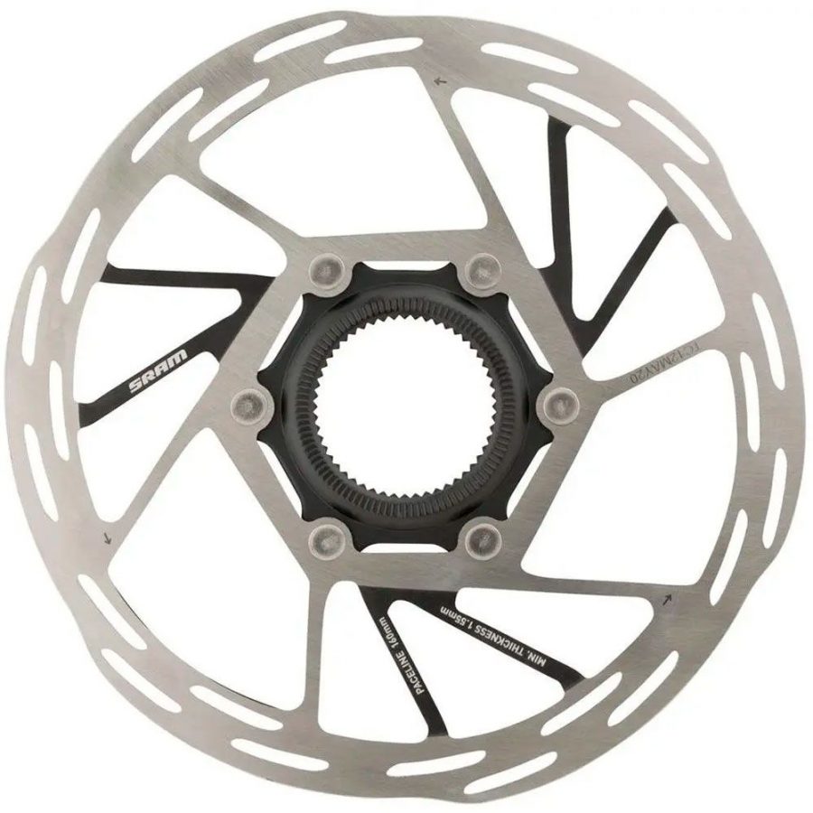 Гальмівні ротори Paceline відображають витончений дизайн групсетів eTap AXS для дорожніх велосипедів і мають нову конструкцію вентиляції гальмівної поверхні для плавного і безшумного гальмування.