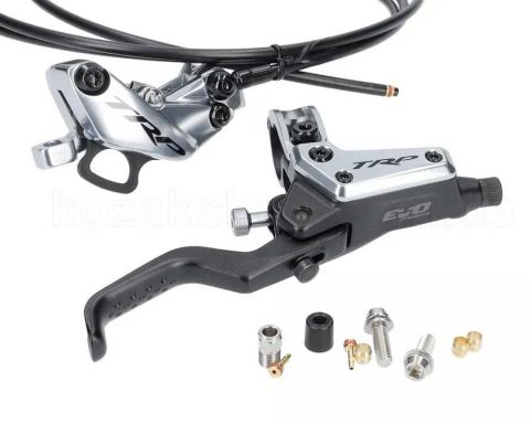 Профессиональные гидравлические задние тормоза TRP DHR EVO PRO. 4 поршня, армированная гидролиния 1900 мм. Предназначены для эндуро, даунхилла и электровелосипедов. Серебристая ручка.