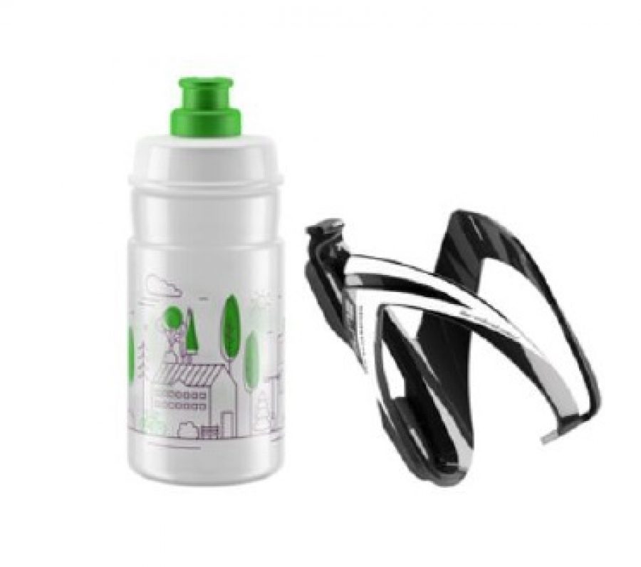 Комплект ELITE CEO: флягодержатель и фляга JET 350мл (белый/зеленый)