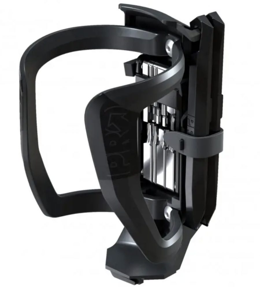 Флягодержатель PRO Smart выполнен из прочного и легкого материала, обеспечивая надежную фиксацию фляги. Его особенность заключается в скрытых отделениях: одно для трех бортировок, которые всегда должны быть под рукой в случае прокола, и другое для компактного минитула на 9 функций.