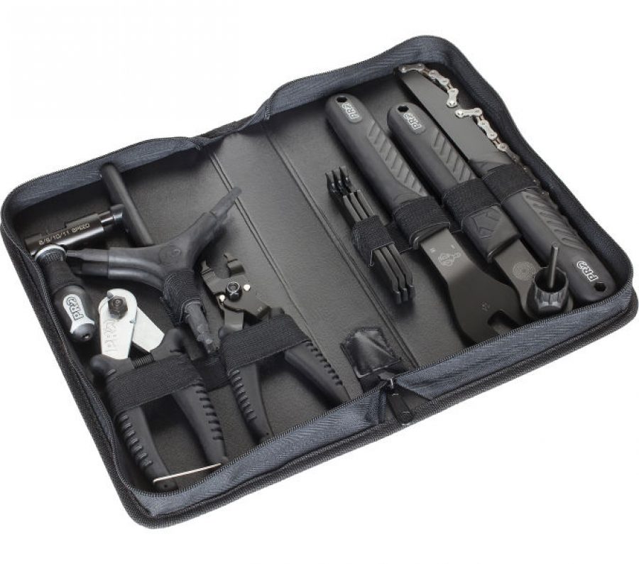 Стартовый набор инструментов PRO (11 предметов) для базового и быстрого обслуживания. Включает съемник кассеты, педальный ключ, съемник цепи, кабельные клещи и Y-образные шестигранники. Идеально для начинающих.