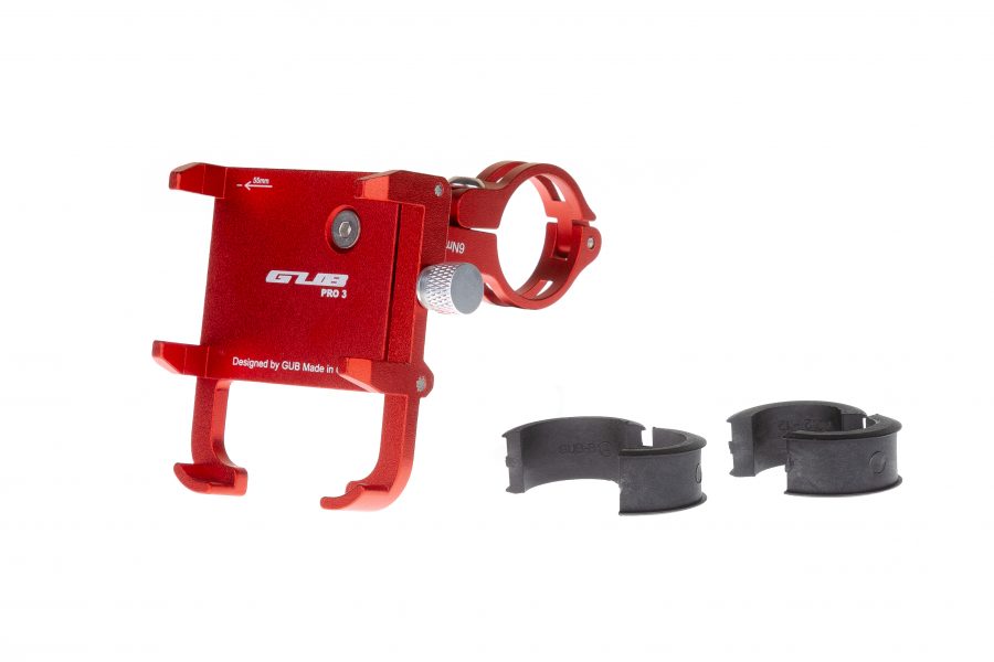 Держатель гаджета GUB PRO-3 на руль алюминиевый для PowerBank/телефонов в чехлах, красный