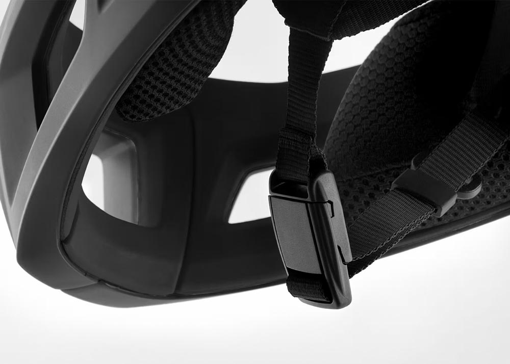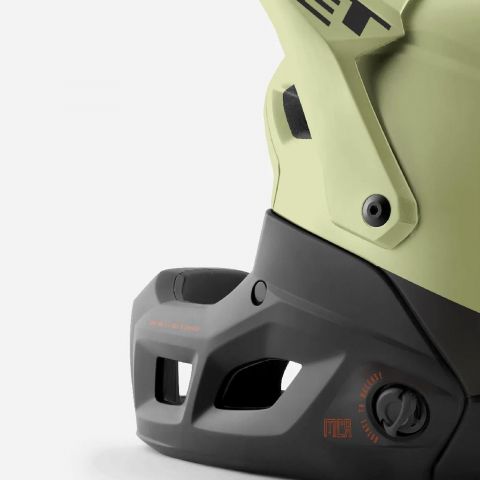 Шлем оборудован системой застегивания Fidlock®, позволяющей быстро и надежно закрывать ремешок даже в перчатках или под дождем. Челюстная дуга фиксируется магнитной системой MCR — достаточно одного нажатия, чтобы снять или присоединить защиту, не снимая сам шлем. Такой механизм особенно удобен в динамическом режиме гонки или тренировки.
