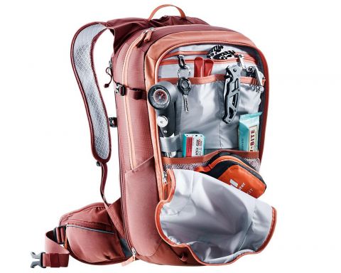 Deuter Compact EXP 12 SL sienna-redwood — женский велосипедный рюкзак из серии SL разработан специально с учетом анатомии женщин: укороченная спинка, узкие плечевые лямки и конические бедренные плавники обеспечивают комфортную посадку даже во время длительных поездок.