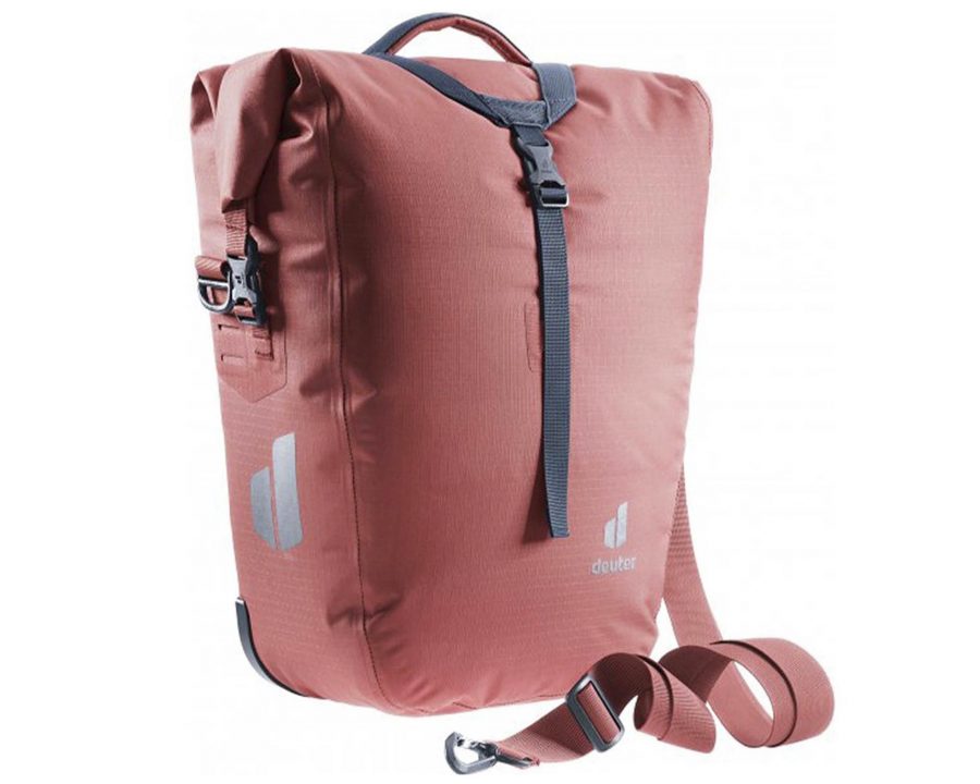 Deuter Weybridge 20+5 redwood — компактная и функциональная водонепроницаемая сумка для велосипеда, эффективно защищающая багаж от дождя и дорожных брызг. Модель изготовлена ??из высококачественного материала 420D PA TOMCOAT, что обеспечивает долговечность и износостойкость.