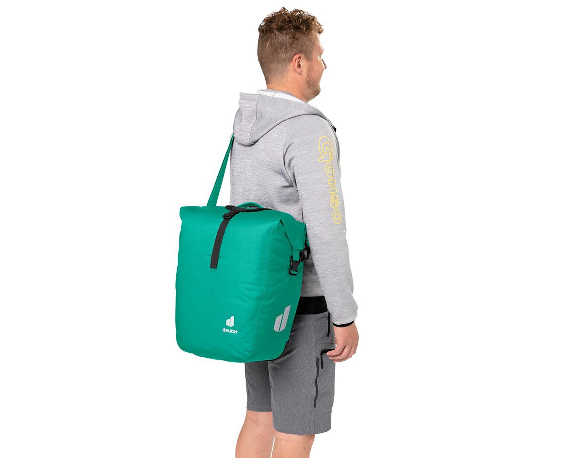 Инновационная система BagFix обеспечивает стабильное крепление сумки на багажнике, разгружая спину велосипедиста. Сумку можно быстро отсоединить одним движением и носить как сумку через плечо, используя съемный ремень. Объем регулируется с 25 до 30 литров благодаря верхней завинчивающейся крышке с двусторонней молнией. Регулируемая ручка позволяет закреплять дополнительное снаряжение, например коврик или куртку.