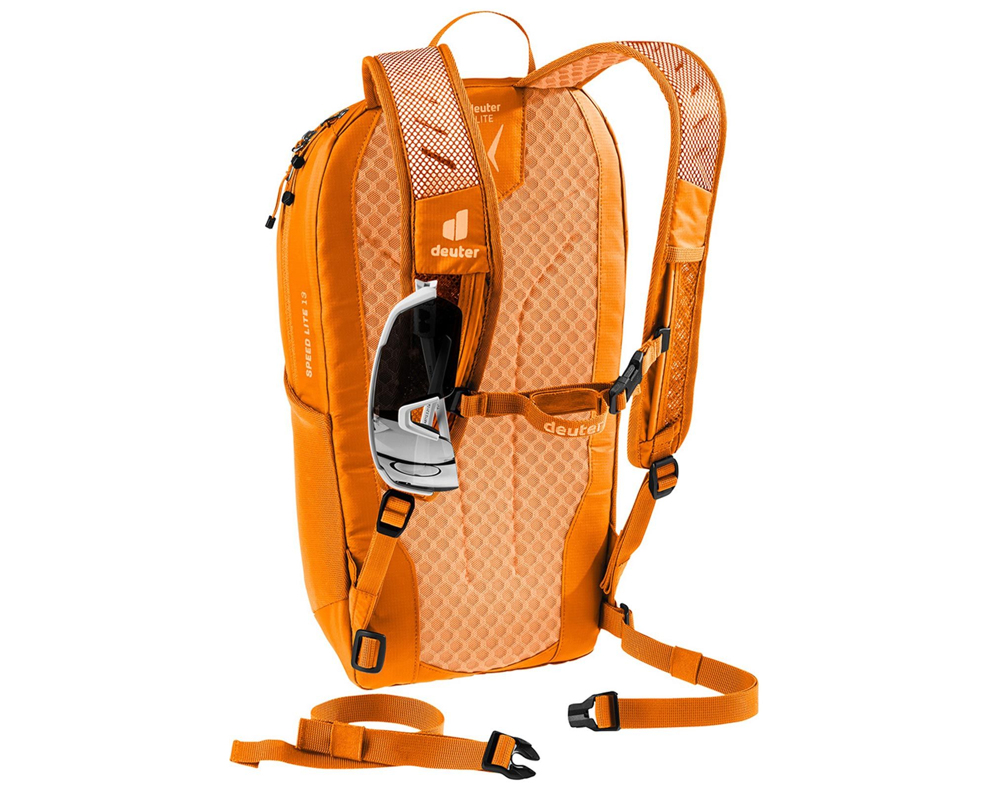 Модель оснащена системой переноса Deuter Lite из дыхательной пены и сетчатой ??подложкой, что обеспечивает вентиляцию и плотную посадку даже при высокой динамике движения. Профилированные плечевые лямки и съемный поясной ремень обеспечивают анатомическую поддержку и снижают нагрузку на спину, а нагрудный ремень регулируется по ширине и высоте, что позволяет адаптировать посадку индивидуально.