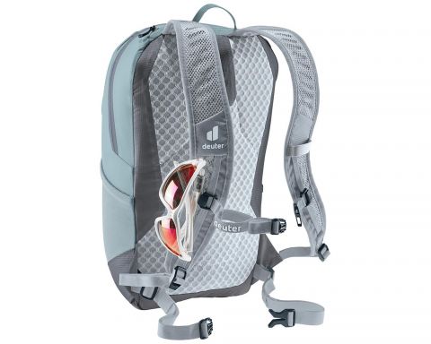 Спинка Deuter Lite обеспечивает вентиляцию благодаря подушечкам с воздушными каналами. Перфорированные мягкие лямки, регулируемый нагрудный ремень и съемный поясной ремень способствуют удобной посадке. V-образная гибкая рама равномерно распределяет нагрузку и поддерживает свободу движений.
