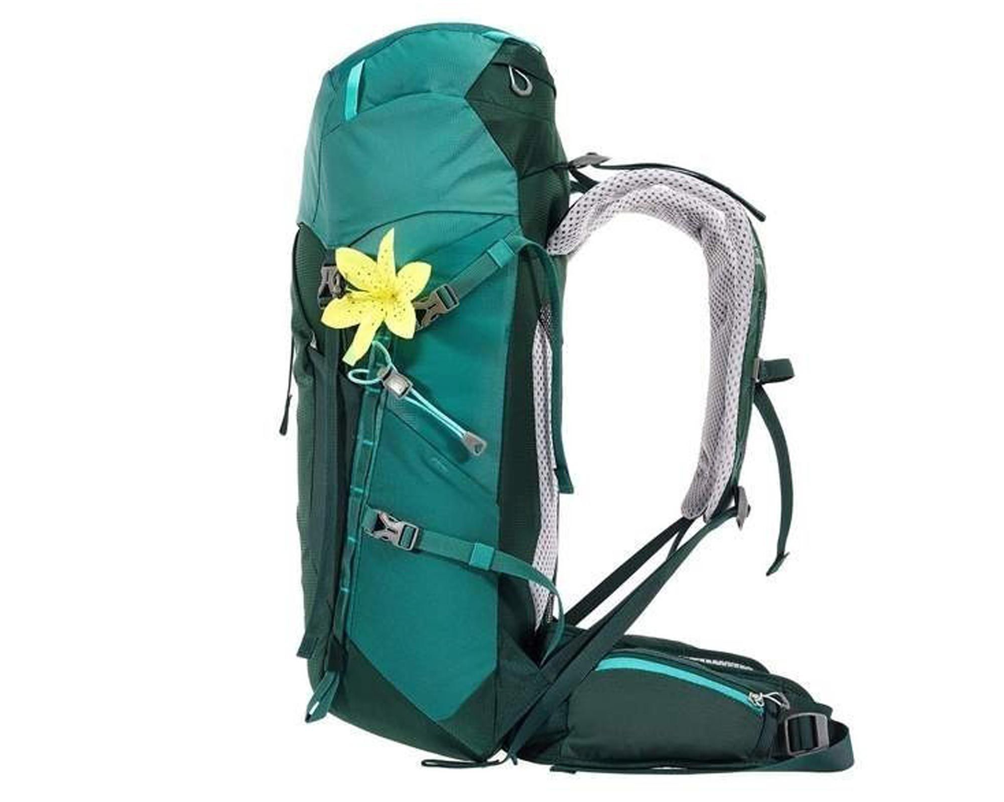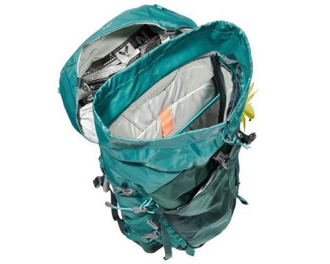 Особенности | Женская система подвески SL, каркас Delrin® U‑Frame, Lite Air System, вентиляция спины, вентиляционный поясной ремень, стяжки, регулируемый нагрудный ремень, регулируемый клапан с карманом, фронтальный эластичный карман, внутреннее отделение для сырых вещей, светоотражающие логотипы, метка3&8 два кармана на молнии в поясном ремне, два дейзи-чейна, усиленное дно |