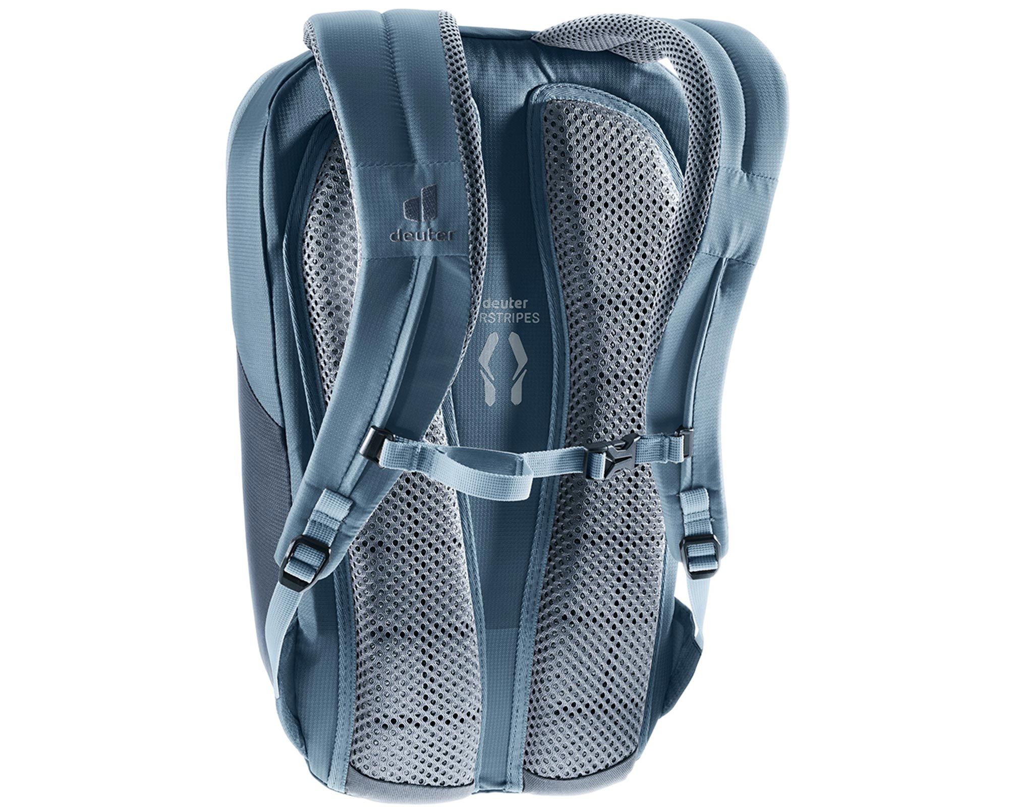 Deuter Yort 15 в сочетании цветов atlantic-ink — это стильный и удобный городской рюкзак, предназначенный для активных людей, ценящих комфорт и функциональность. Система Airstripes с уменьшенной площадью контакта обеспечивает превосходную вентиляцию спины, а эргономичные мягкие лямки и регулируемый в двух направлениях грудной ремень гарантируют комфорт в течение дня.