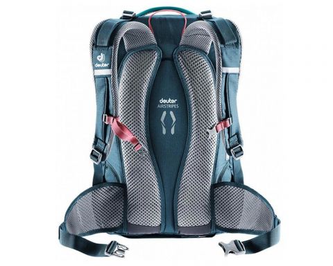 Deuter Giga Bike SL petrol-arctic — универсальный женский рюкзак, предназначенный для активных велосипедисток и городской жизни. Серия SL специально адаптирована к анатомии женщин: более короткая спинка, более узкие лямки и конические бедренные плавники обеспечивают комфорт и плотную посадку. Система Airstripes с вентиляционными каналами уменьшает контакт с телом и улучшает воздухообмен, что снижает нагрев спины даже во время интенсивных поездок.