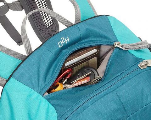 Организация пространства: вместительное основное отделение, передний эластичный карман, эластичные боковые карманы, два кармана на поясе, внутренний карман для ценных вещей с крючком для ключей. Совместим с гидратором (до 2 л), в комплекте съемный дождевик, компрессионные стяжки, петли для трекинговых палок и элементы с отражающим покрытием.