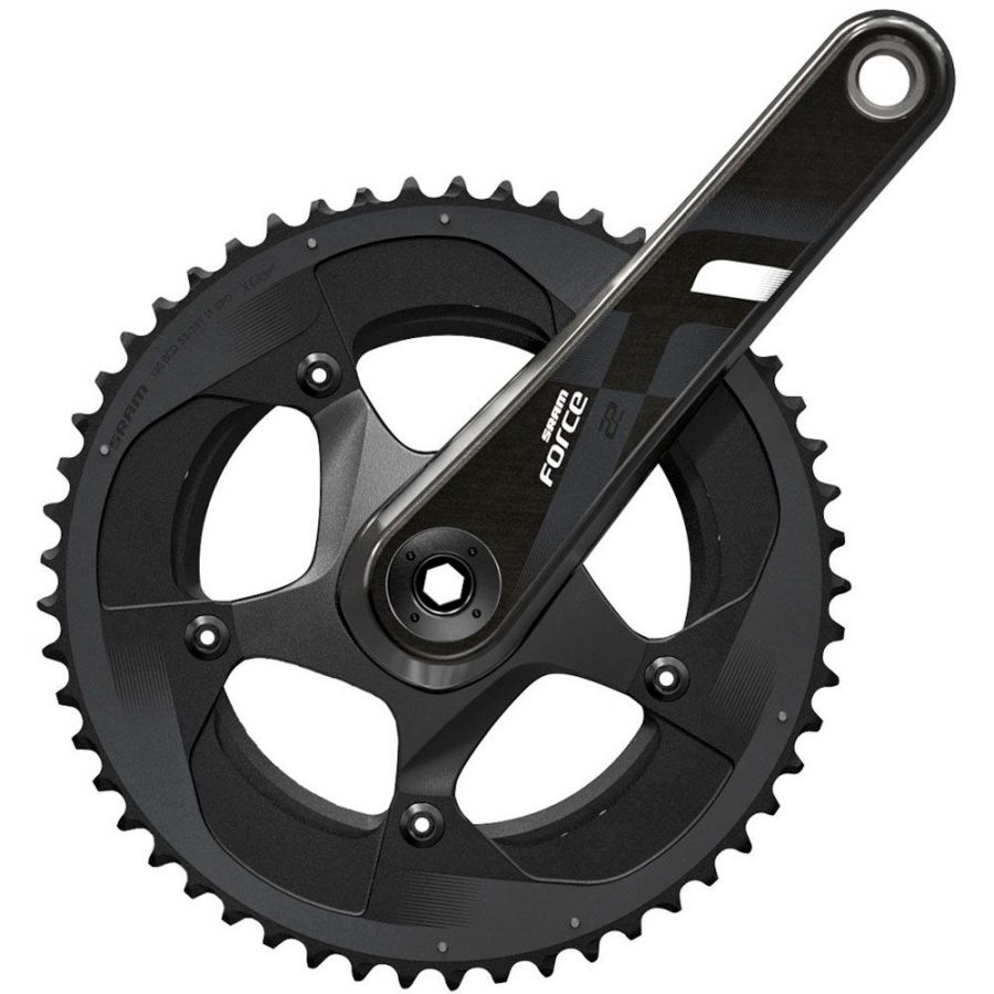 Шатуни SRAM Force 22 забезпечують високий рівень продуктивності завдяки використанню однонаправленого вуглецевого волокна в важелях і кованого сплаву в павуку. Система з прихованою разболтовкою підвищує жорсткість і знижує вагу, оптимізуючи використання вуглецевого волокна.