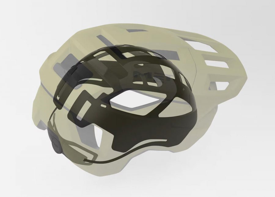 Корпус виконаний методом in-mould: міцний полікарбонат надійно сполучений з EPS-вкладкою. Задня частина шолома розширена для додаткового захисту потилиці і скронь. Вбудовані платформи для окулярів дозволяють надійно прикріплювати шолом під час пауз, а сумісність з USB‑світлом підвищує видимість у сутінках.