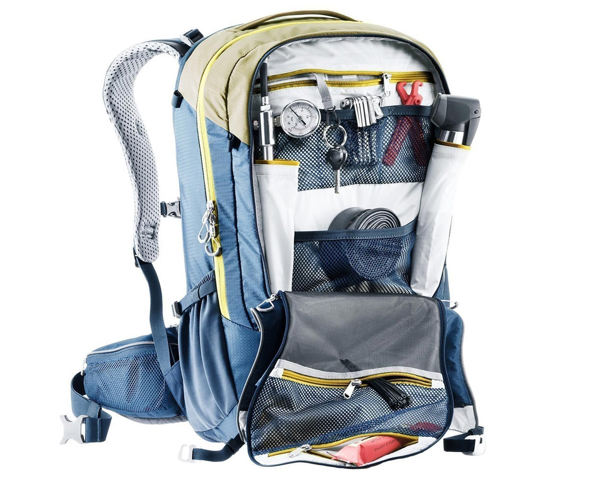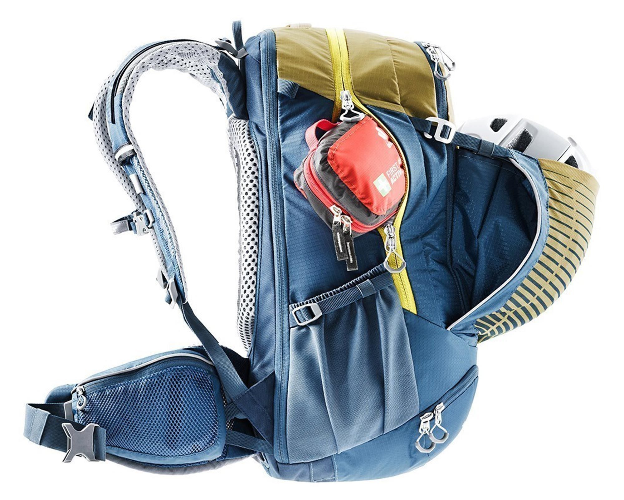 Deuter Trans Alpine Pro 28 clay-marine — професійний велосипедний рюкзак, спроєктований для транс-альпійських маршрутів, але чудово підходить і для походів, подорожей чи повсякденного використання. Завдяки міцним матеріалам 210D PA та 600D PES він витримує високі навантаження та зберігає свій вигляд навіть після інтенсивної експлуатації.