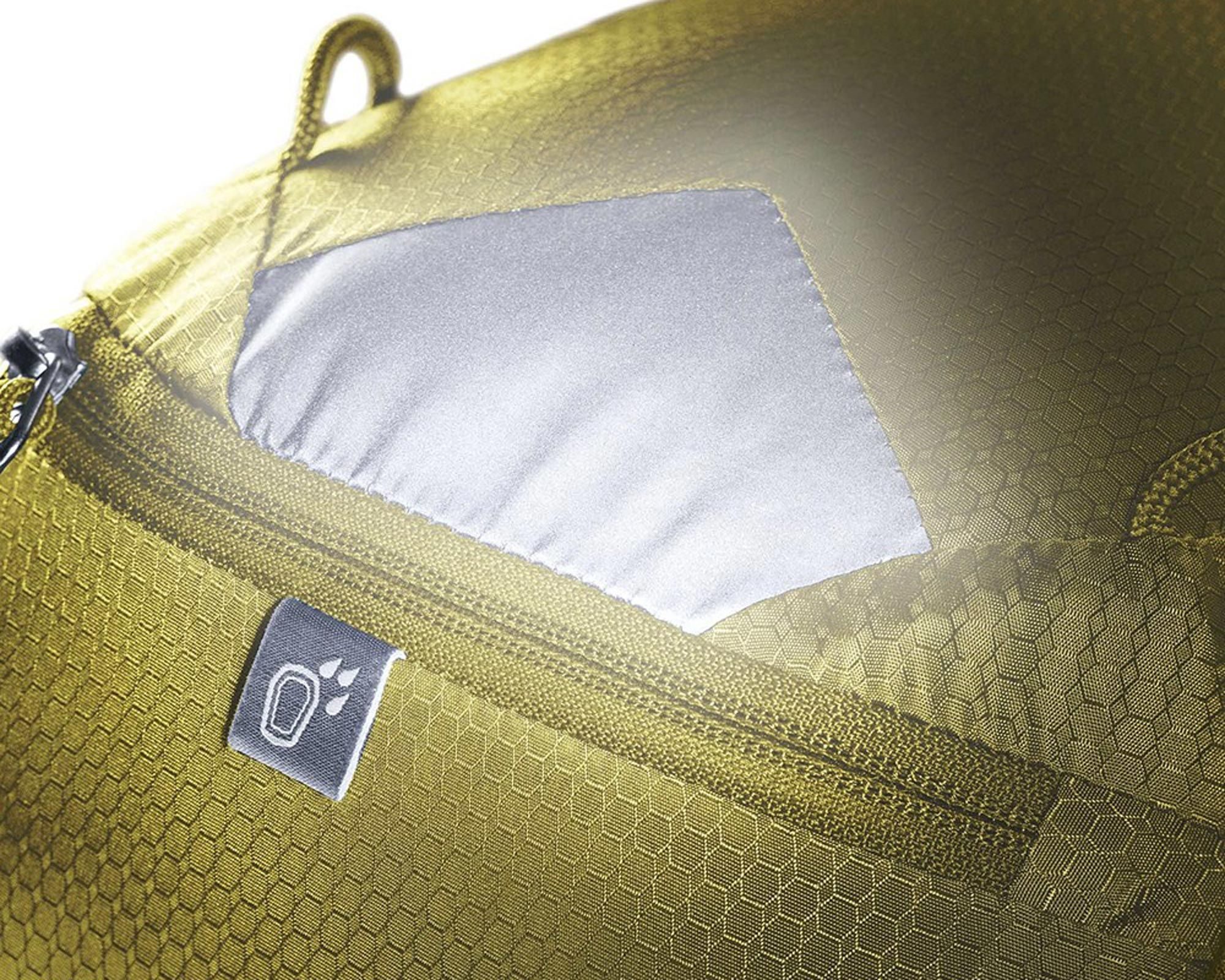 | Особливості | сумісність із питною системою до 3 л, система спини Airstripes, вентиляційні плечові лямки, сітчастий пояс, еластичні бокові кишені, бічна кишеня для телефону, тримач для окулярів, петлі для шолома, відділення для вологого одягу, світловідбивні елементи, вбудований дощовик, екологічна тканина зі 100% переробленого ПЕТ, не містить ПФАС |