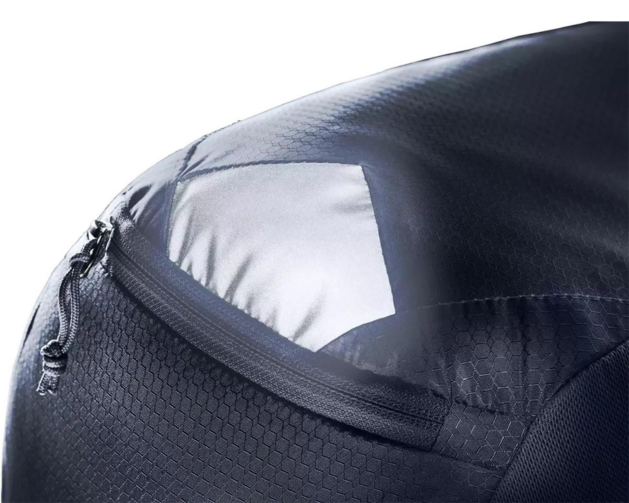 Модель оснащена знімним дощовиком і світловідбивними елементами для безпеки. Тканина 100D REC PA HT Bright виготовлена зі 100% переробленого ПЕТ та не містить ПФАС, що робить рюкзак екологічним і довговічним. Завдяки можливості збільшення об’єму на +3 л він ідеально підходить для одноденних велотурів та повсякденного використання.