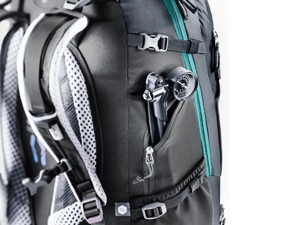 Особливості | система спини Deuter Airstripes, анатомічна жіноча конструкція SL, ергономічні лямки зі стабілізуючими ременями, пояс із кишенями, додатковий нижній доступ, внутрішня перегородка, передній органайзер, кишеня для смартфона, кріплення для шолома, відділення для насоса й інструментів, дощовий чохол, знімна сидушка, світловідбивачі |